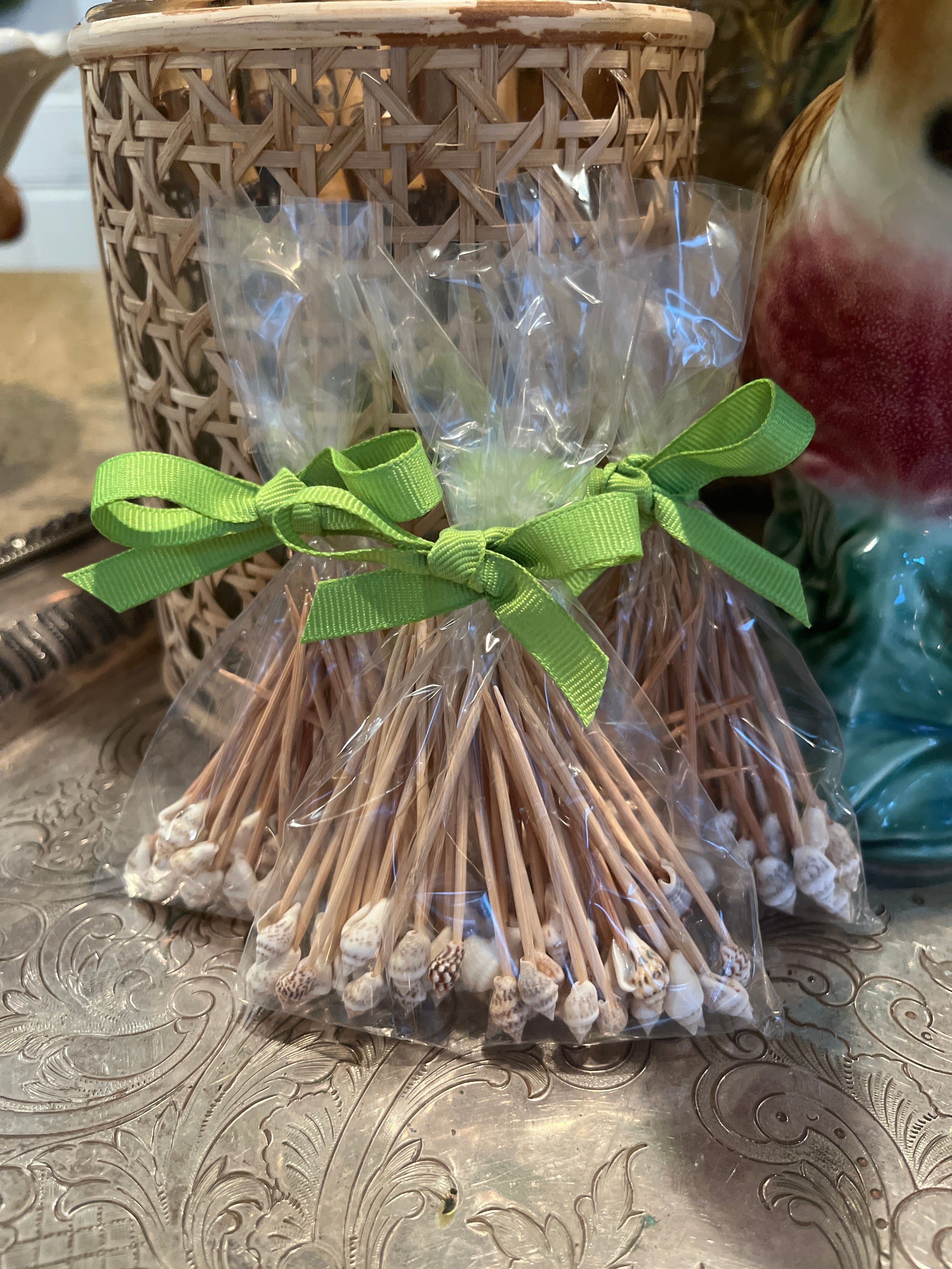 Are you looking to refill your Hostess Gift drawer? These sweet bags of shell topped cocktail picks are a perfect gift to bring to any gathering!