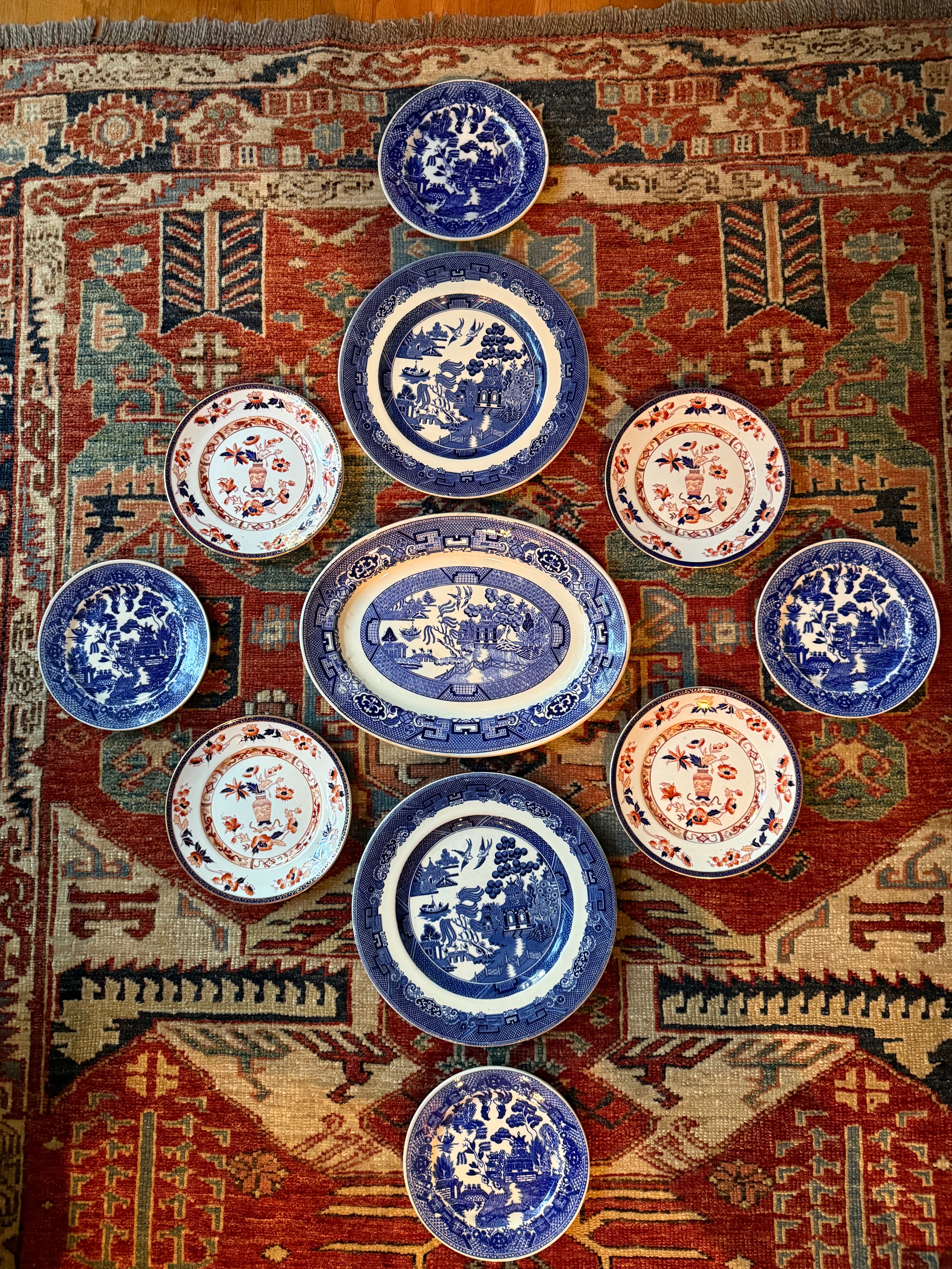 A slight diversion from my usual offering.. this gorgeous 12 piece set includes 8 Blue Willow plates from various makers: