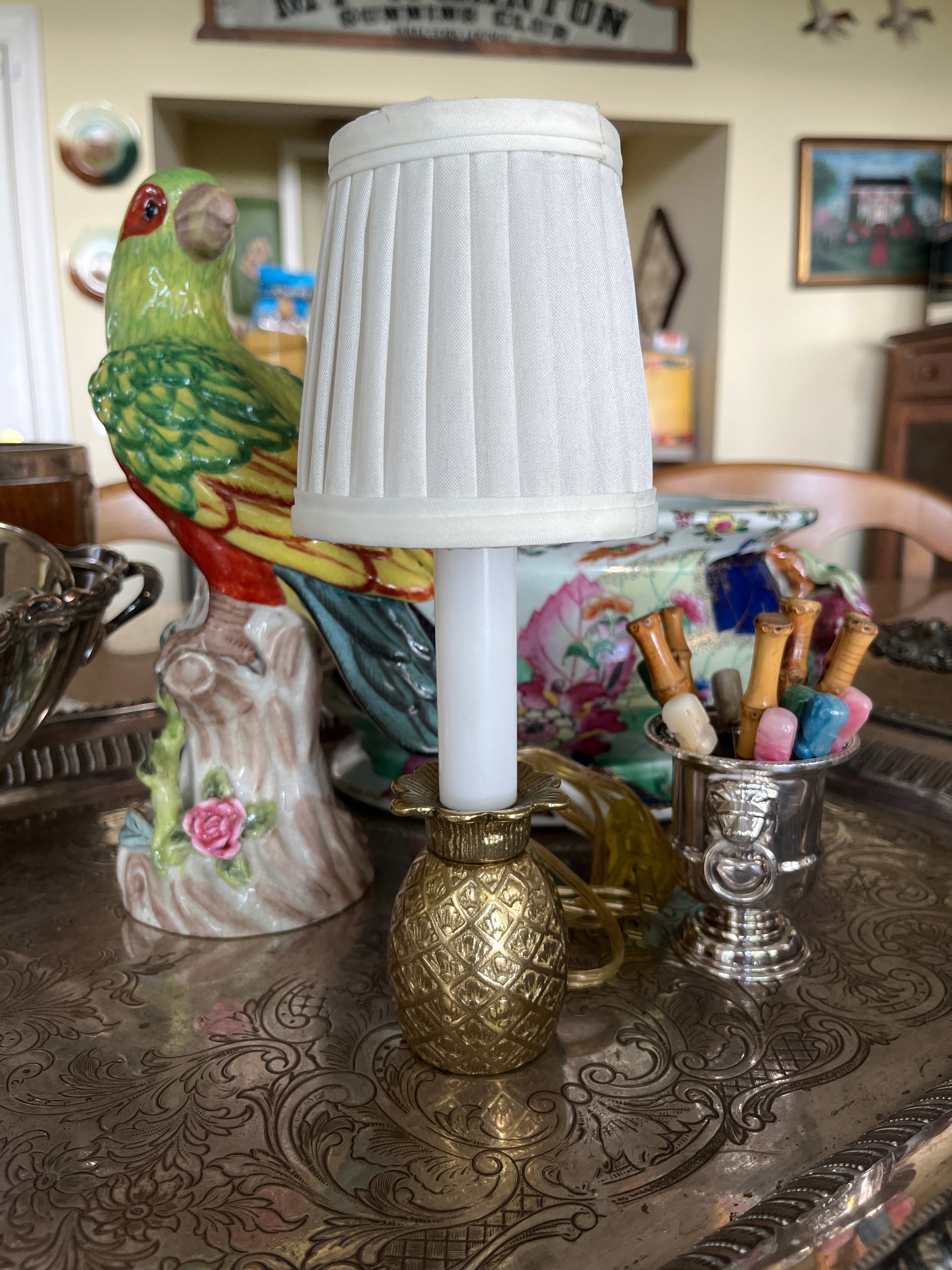 These darling, brand new  pineapple candlestick lamps beautifully illuminate windows or add a touch of ambient lighting to your home.