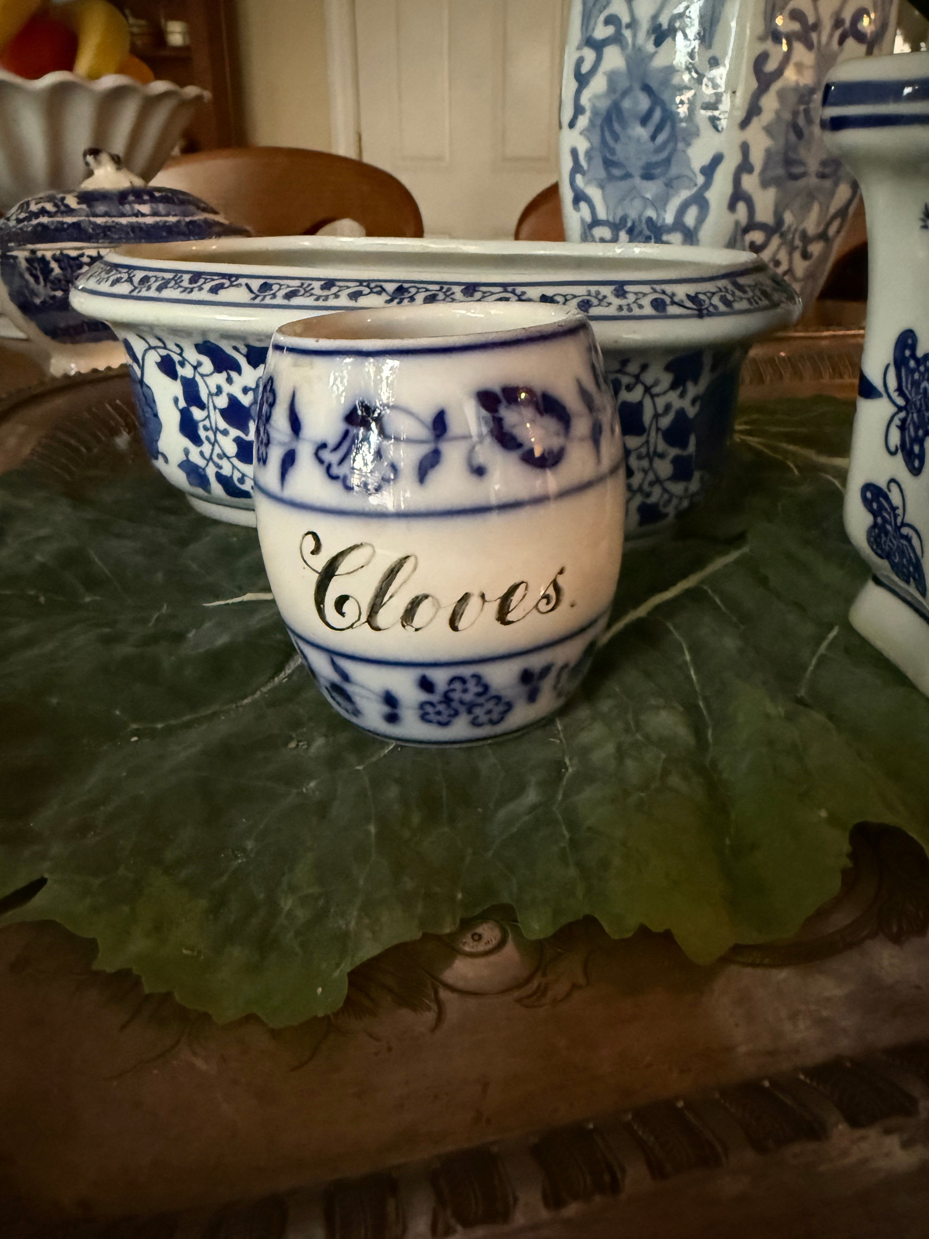 The word Cloves is delicately hand painted in black and does show a little bit of where. But how, darling would this be on a table with Seafood forks or teaspoons?