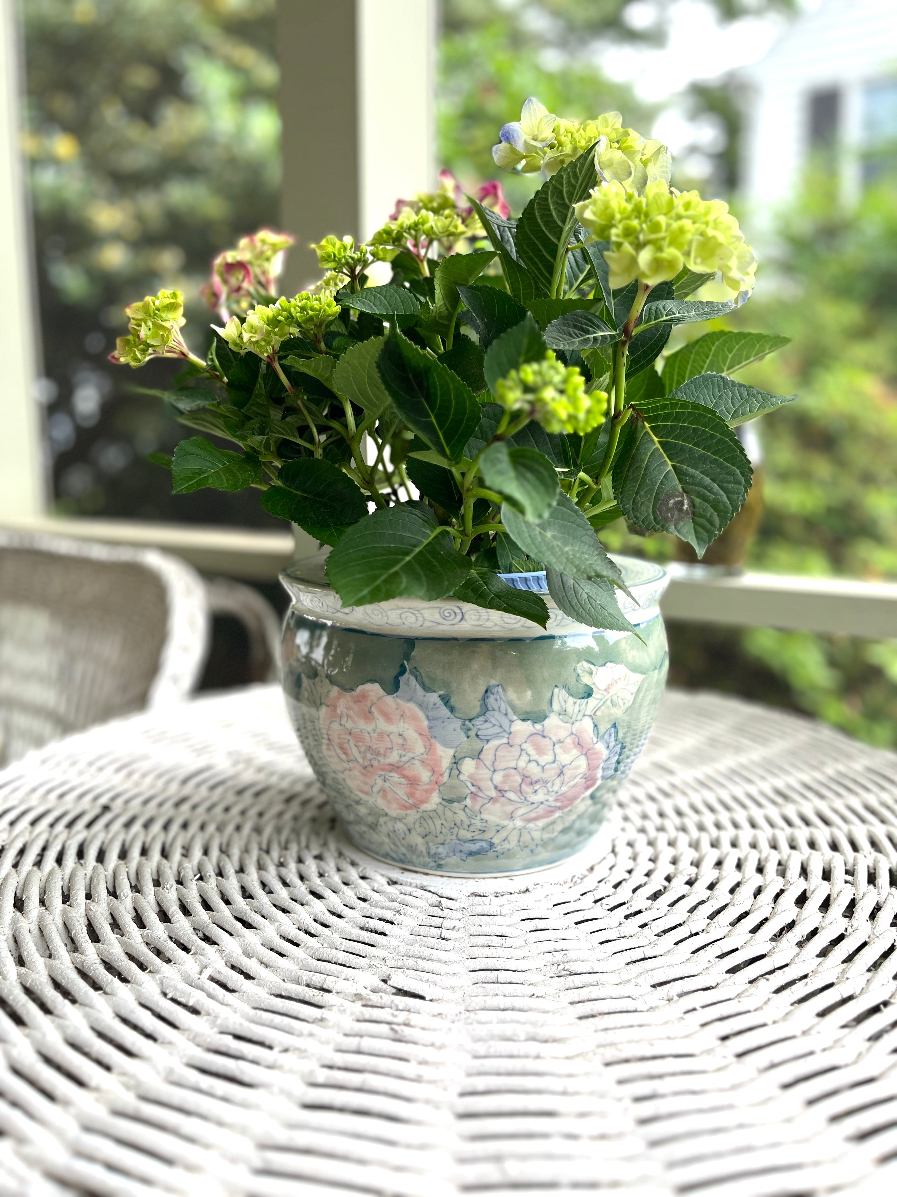 This is a wonderful hand colored ceramic fishbowl planter. It’s vintage 1980s in beautiful pastel shades of pink green and blue. I love the Greek keyboard around the rim and there is also a hand colored border around the neck. It is an excellent condition with no chips or cracks it measures9 1/2 inches wide and 7 inches tall perfect for a nursery pot 6 to 8 inches in diameter.