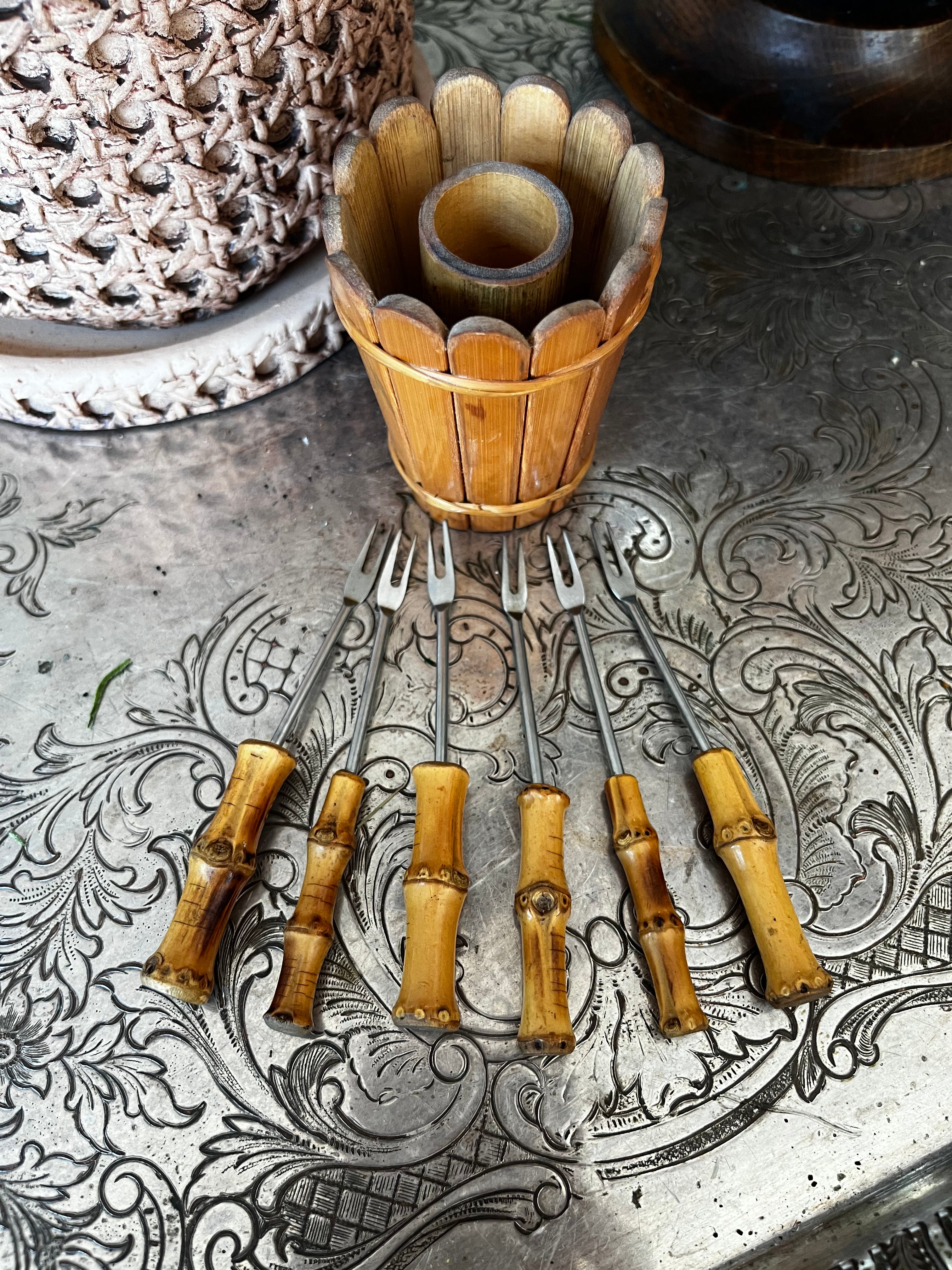 MCM Bamboo Cocktail Fork Set