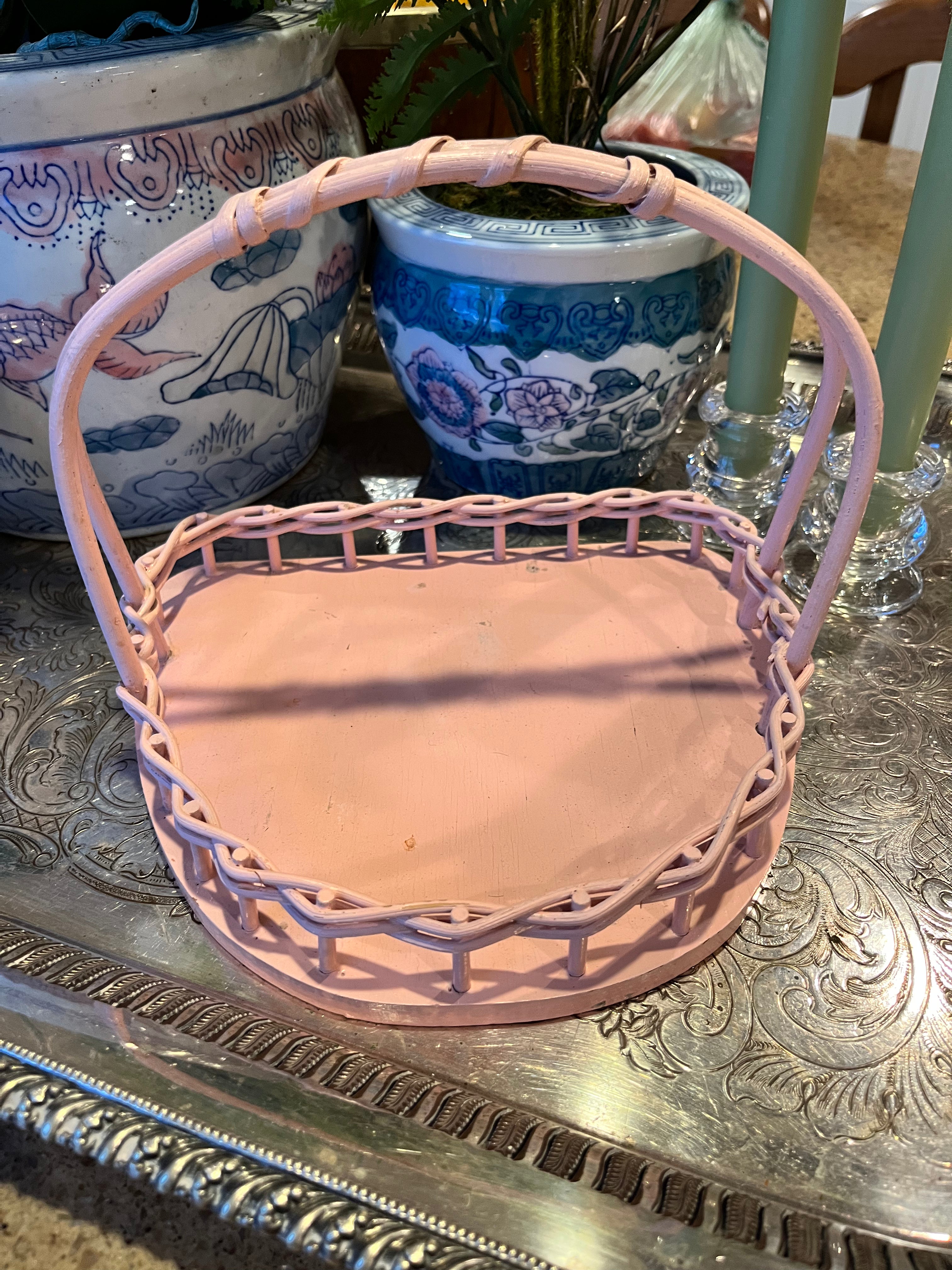 I’m obsessed with this darling vintage wicker tray! The baby pink color is dreamy!!