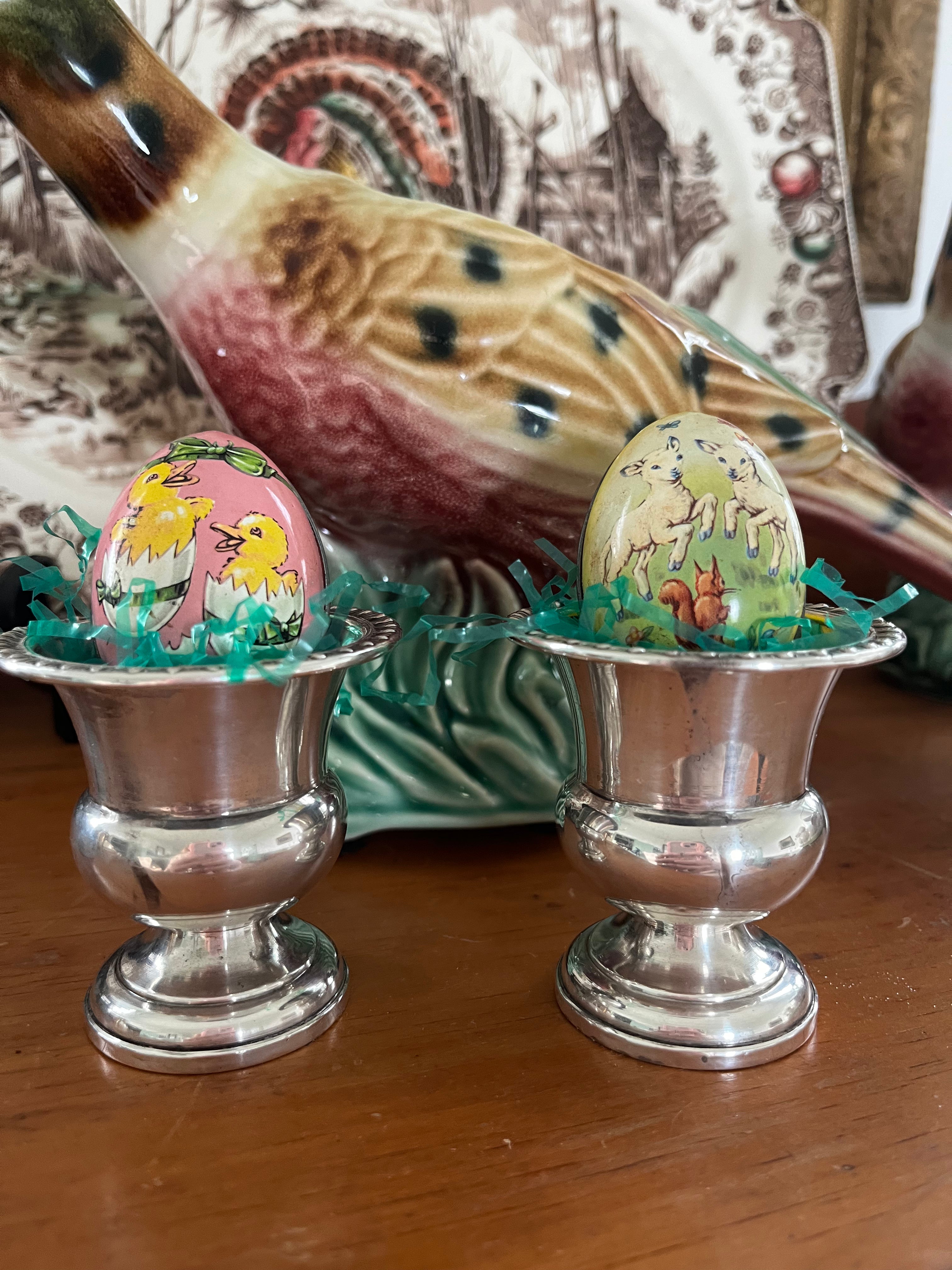 These darling mini Sterling Silver urns are perfect for vintage Easter eggs! When the holiday is over use them to hold toothpicks, matches or Qtips!!