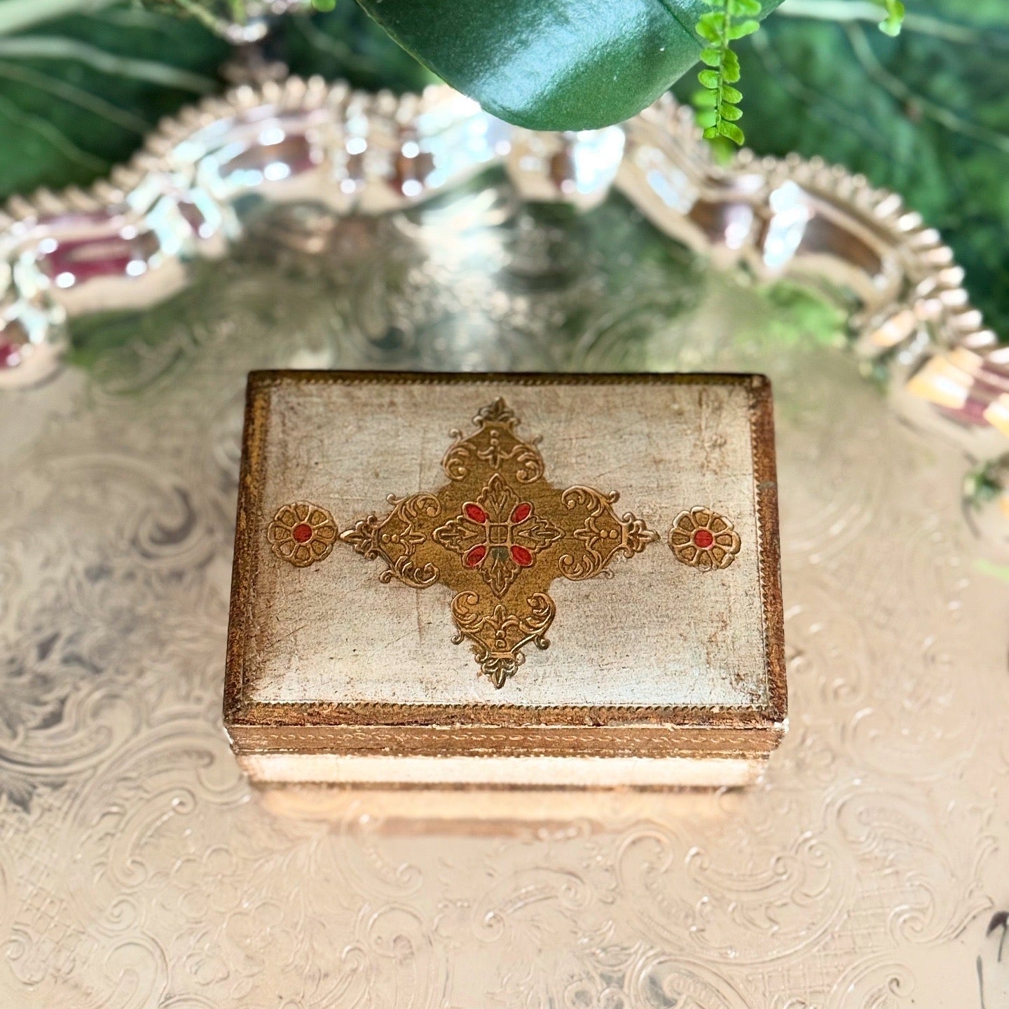 The sweet Florentine box measures 4 inches long, two and three-quarter inches wide, and one and three-quarter inches tall